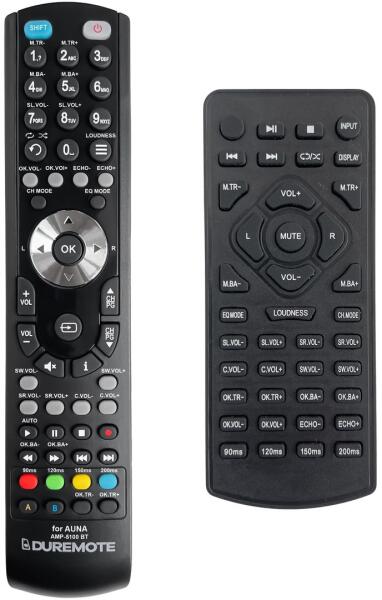 Az eredeti 1:1 arányú duplikátuma távirányító AUNA AMP-5100 BT, AMP-H260, 10034620, 10036140 (AMP5100 BT, AMPH260, 10034620, 10036140). A távirányító a AUNA:10036140, AMP-5100BT, AMP-H260, AMP5100BT, AMPH260. (Előfordulhat, hogy nem minden kompatibilis modell szerepel a listában. Ha nem biztos benne, csak adja meg a készülékmodelljét (online chat-en vagy e-mailben), és mi azonnal