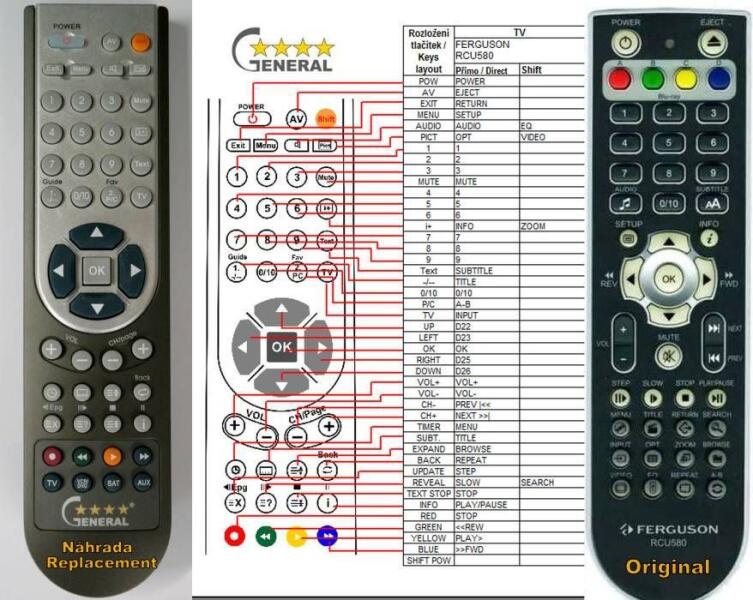 Helyettesítő távirányító FERGUSON RCU-580 (RCU580) - 100%-os 1:1 arányú helyettesítője az eredeti távirányítónak. A távirányító a FERGUSON:D-660, D-660K, D-680, D-690, D-770HX, D-780HX, D-880HX, D-890HX, D-990HX, DVP868HD. (Előfordulhat, hogy nem minden kompatibilis modell szerepel a listában. Ha nem biztos benne, csak adja meg a készülékmodelljét (online chat-en vagy e-mai
