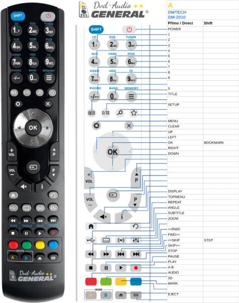 Helyettesítő távirányító DMTECH DM-2010 (DM2010) - 100%-os 1:1 arányú helyettesítője az eredeti távirányítónak. A távirányító a DMTECH:DM-2010, DM2010. (Előfordulhat, hogy nem minden kompatibilis modell szerepel a listában. Ha nem biztos benne, csak adja meg a készülékmodelljét (online chat-en vagy e-mailben), és mi azonnal ellenőrizzük, if kompatibilis-e az Ön készül