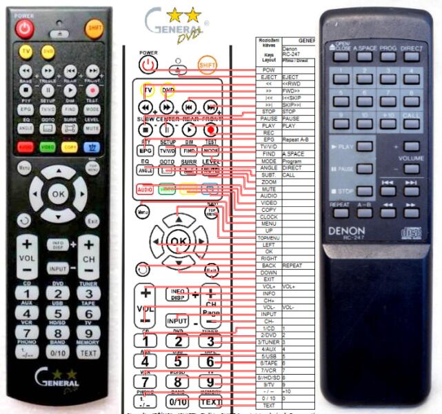 Helyettesítő távirányító DENON RC-247 (RC247) - 100%-os 1:1 arányú helyettesítője az eredeti távirányítónak. A távirányító a DENON:DCD595, DCD615, DCD695, DCD815. (Előfordulhat, hogy nem minden kompatibilis modell szerepel a listában. Ha nem biztos benne, csak adja meg a készülékmodelljét (online chat-en vagy e-mailben), és mi azonnal ellenőrizzük, if kompatibilis-e az