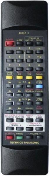 Helyettesítő távirányító PANASONIC TECHNICS AUDIO 2 - 100%-os 1:1 arányú helyettesítője az eredeti távirányítónak. A távirányító a PANASONIC:32, 34, 64, RAK-CH121WH, RAK-CH201WH, RAK-CH219WH, RAK-CH426WH, SA-CH, SA-EH500, SC-CA01, SC-CA10, SC-CH, SC-CH34, SC-CH40, SC-CH515, SC-CH540, SC-CH550, SC-CH570, SC-CH74, SC-EH50, SC-EH500, SC-EH60, SC-EH600, SC-HD51, SC-HD70, SC-HD81, SC-
