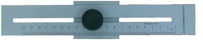 Lapos kivitelű. Matt krómozású. mm beosztással. Edzett rajzoló élek.
