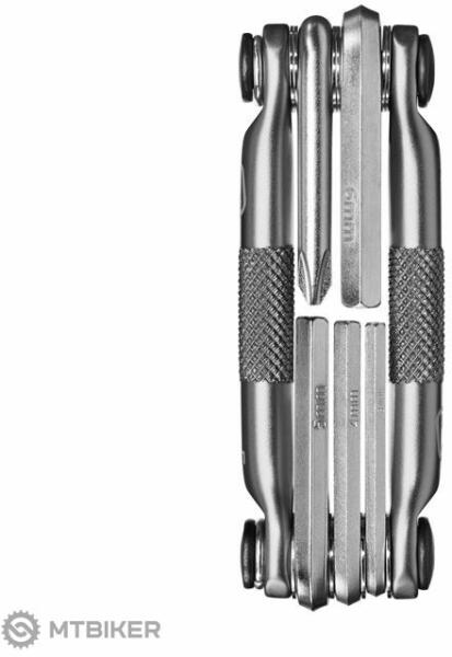 Könnyű, 10 funkciós szerszám. Súly: 124 g Hossz: 89 mm Anyaga: duralumínium 6061 t6 Szerszámok: nagy szilárdságú acél Imbuszkulcsok: 2 / 2,5 /3/4/5/6/ 8 mm Csavarhúzók: Phillips és lapos Torx kulcs : T25