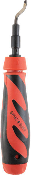 Csupaszoló kés, kampós pengével, 4 - 28 mm Ø-jű kábelekhez Minden hagyományos kör keresztmetszetű 4 - 28 mm Ø-jű kábel precíz, gyors és biztos lecsupaszítására, állítócsavarral állítható vágásmélység, az elfordítható belső kés automatikusan áll át körbe vágásról hosszanti vágásra, tartalék penge a nyélben. Jellemzők: Csupaszoló kés, kampós pengével, 4