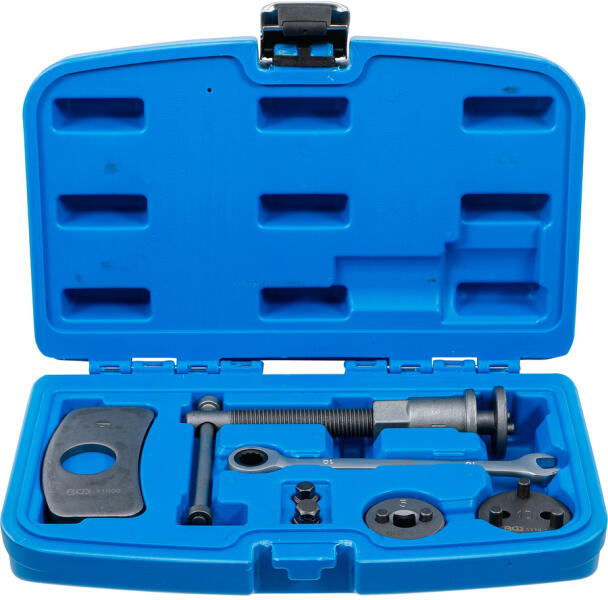 Az Iveco tárcsafékek fékdugattyúinak visszaállításához Iveco Stralis, Eurocargo, Daily fékekhez használható A következő szerszámokat tartalmazza: 10 mm-es racsnis kulcs Visszatekercselő szerszám Alátétlemez 2 visszaállító korong 3 csapszeggel 2 mikrobit 8 mm-es belső hatszögletű, 10 mm-es meghajtással Súly: 1220 g