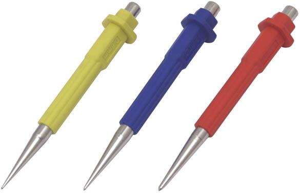 A pontozó kitűnő minőségű CrV acélból készült. Praktikus műanyag tartó. Az egyes méretek színjelöléssel vannak megkülönböztetve sérülés elleni védőelemmel ellátott markolat