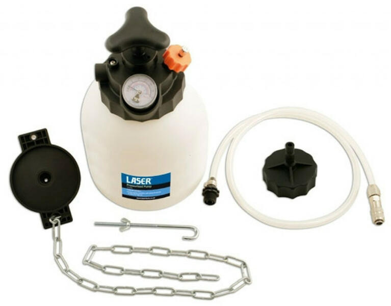 3 literes féklégtelenítő tartály univerzális adapterrel és 44 mm-es Euro kupakkal. Tulajdonságok: - kézi működtetés (egy kézzel) - 3 literes kapacitás - 44 mm-es európai kupakkal - univerzális adapterrel, 20 - 90 mm-es tömítéssel - nyomásmérő és manuális pumpa, ami nem igényel nagy erőkifejtést - nincs szükség külső tápforrásra - nyomásleeresztős töltőkupakkal