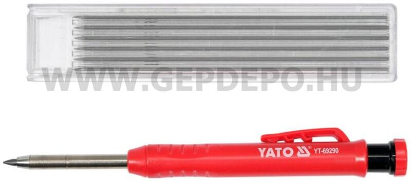 Yato automata ácsceruza 6 db HB heggyel 150 mm Műszaki ceruza 150 mm hosszú, automatikusan visszahúzható béllel. Különféle faanyagok, például táblák, rétegelt lemez, forgácslap és építőanyagok jelölésére és vonalazására tervezték. Teste tartós ABS műanyagból készült, vékony fém hegytartója 40 mm hosszú - ideális lyukak jelölésére. Végén gomb a ceruzabél ki
