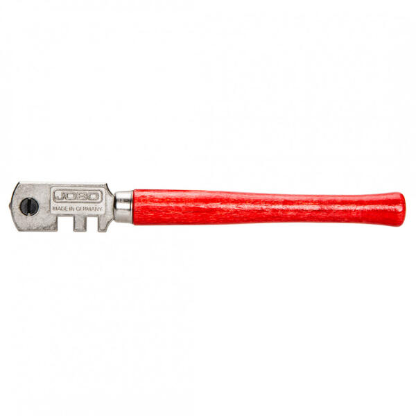 Jobo üvegvágó, fa nyéllel A "Jobo" egyszerű üvegvágó szerszám egy hat cserélhető vágókoronggal felszerelt eszköz, amely hosszú élettartamot biztosít a szerszámnak. A fa nyél kiválóan illeszkedik a kézbe, így kényelmes használatot tesz lehetővé. Az üvegvágó fejében kialakított üvegtörő hornyok pedig nagy segítséget nyújtanak a vágás során. Ez a szerszám kiv