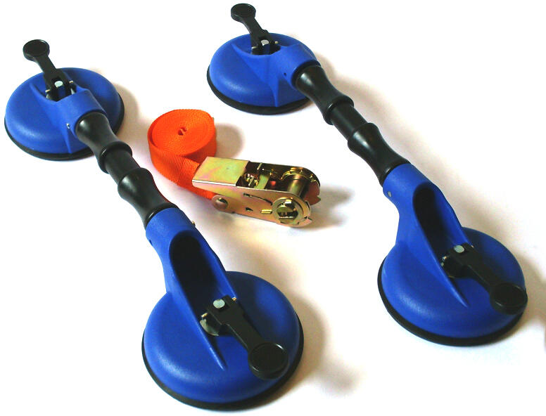 Ellient Tools Vákuumos üveg kiemelő készlet A készlet 2 darab vákuumos dupla tappancsos csuklós tapadókorongot és egy spanifert (racsnis lekötözőt) is tartalmaz azért, hogy biztonságos és kényelmes használatot biztosítson az üvegfelületek ki- és beszerelésénél. A tapadókorongok 30°-kal dönthetők, így az íveltebb üvegfelületen is megtapadnak. Jellemzők: A készlet t