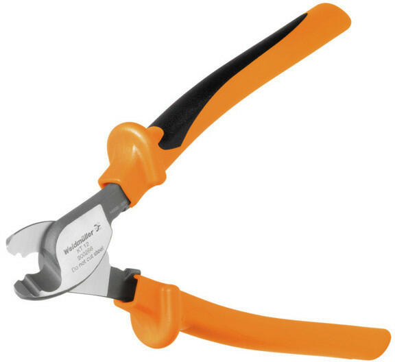Weidmüller 9002660000 KT 12 vezeték vágó olló, egykezes vágószerszám Vágószerszámok kábelekhez 12 mm külső átmérőig. A penge speciális geometriája lehetővé teszi a réz és alumínium deformáció mentes vágását minimális fizikai ráfordítással. A vágószerszámok az EN/IEC 60900 szerinti VDE- és GS-tesztelve Vágószerszámok A különféle kábelméretekhez való vá