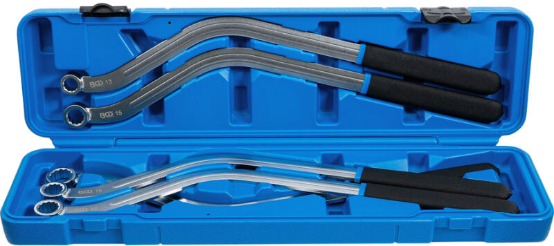 Dupla oldalú, hogy jobban elérje a szűk területeket. Csúszásgátlóval ellátott fogantyúval a könnyű kezelhetőség érdekében Fejméretek: 12 szögű 13 - 15 - 16 - 17 - 19 mm-es kulcsok Súly: 2270 g Hossz: 460 mm Anyaga: CrV Felülete: Krómozott