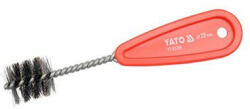 YATÓ Csőtisztító drótkefe. Acélsörtével rendelkezik. Sörtéi hengeres kialakítással rendelkeznek, ezért alkalmas csövek belsejének tisztítására 18 mm átmérő ig. Markolata egyszerű kivitelezésű, piros színű műanyagból készült. A rozsdamentes acélból készült huzal tökéletesen eltávolítja a rozsdát és minden szennyeződést a felületről. A forrasztás során a