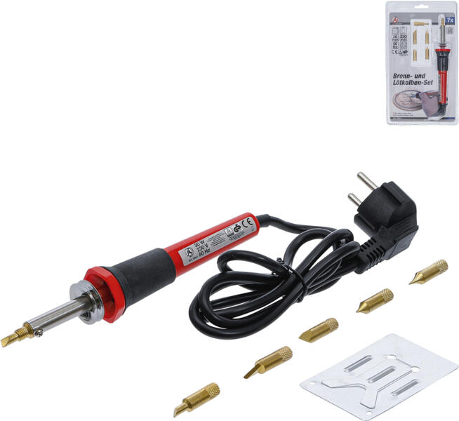 BGS Technic- Germany Fára- prafára és bőrre használható dekoráló és mintázó, égető szerszám 7 darabos különböző pótheggyel. Könnyen használható, szinte mindenki részére ajánljuk. Könnyen megtanulhatunk vele mintákat, dekoratív szöveget égetni maga a fa - parafa és bőr anyagú felületeken. Használata nagyon egyszerű. Falra akasztható műanyag bliszteres csomagál