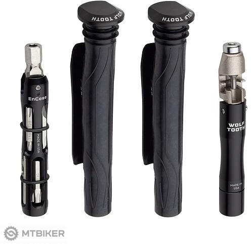 Szervizszerszám készlet tárolóval a 17,5 mm belső átmérőjű kormányhoz, tartalmaz egy imbuszkulcsot, szegecselőt és tárolóhüvelyeket. Szervizszerszámkészlet a gyors terepen végzett javításokhoz, amelyet a legtöbb karbon és alumínium MTB és közúti kormányon belül tart, 17,5 mm belső átmérővel. Nem kompatibilis az erősen profilált és hajlított kavicsos kormányokka