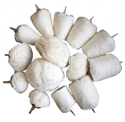 6 darab gomba alakú polírozó fej 2x50 mm-75 mm-100 mm ideális a munkadarab felszínének polírozásához 4 darab kúp alakú polírozó fej 2x53 mm és 2x63 mm ideális a serlegek kupolák tálak és talpas poharak belsejének a polírozásához 4 darab hordó alakú polírozó fej ideális nehezen polírozható felületek és talpas tálak poharak belsejének a polírozásához finom gyapotb