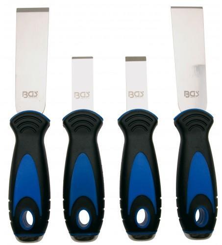 erős ergonómiailag kialakított csúszásmentes gumi nyéllel felfüggesztő lyukkal és fém kupakkal a kalapáccsal való használathoz 2x kaparó 2,4 mm vastag kissé lapított pengével pl. rozsda eltávolításához a penge hossza: 94 mm x 31 mm széles a másik penge hossza: 43 mm x 20 mm széles 2x kaparó 1,1 mm vastag éles pengével pl. tömítés eltávolításához a penge 94 mm hoss