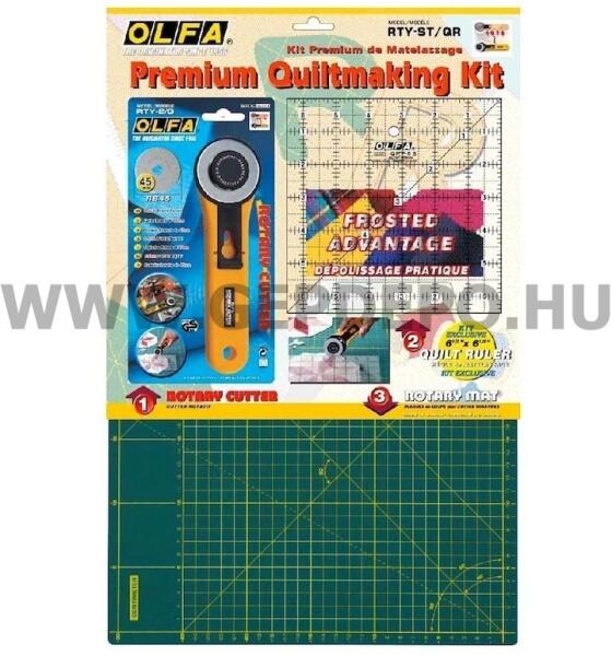 Főbb jellemzők: Foltvarró induló készlet a nélkülözhetetlen eszközökkel Tartalmazza a népszerű RTY-2/G körpengés kést Az elengedhetetlen RM-IC-C 45x30 cm-es, 1,5 mm vastagságú, speciális három rétegű öngyógyuló vágóalátétet És az MQR-15X15, centiméter beosztású vonalzót Használd az OLFA Körpengés, foltvarró késeit textil vágási feladataidhoz, melyek nem mind