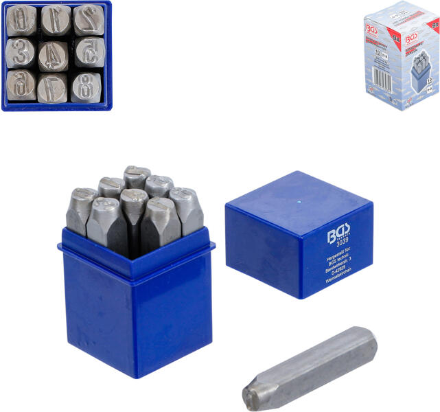 BGS Technic - Germany DIN 1451 9 db-os készlet műanyag tároló dobozban. Számok: 0-1-2-3-4-5-6-7-8 (a 6-os megfordítva: 9-es)