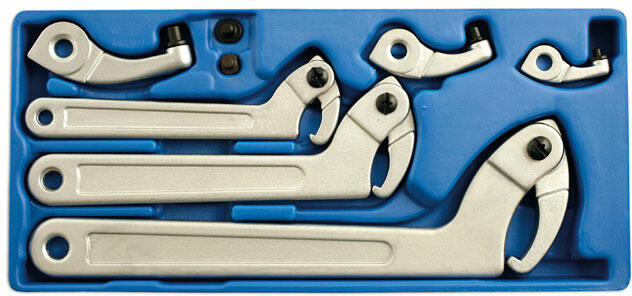 Laser Tools - UK Alkalmazási terület: Motorkerékpárok felfüggesztésén, és más gépeken található hornyolt rögzítőgyűrűk, hornyolt anyák szerelésére használható. Cserélhető kialakítású első rész: csapos és orros rész variálható. Méretek: - kicsi: 19-50 mm - közepes: 32 - 120 mm - nagy: 50 - 120 mm Csap méretek: 4 -5-6-7-8 mm Használható a DIN 1804-es anyák és
