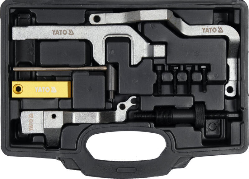Professzionális készlet a benzinmotorok szelepsorának szervizeléséhez. tartalmaz egy szerszámot a GMP beállításához, egy szerszámot a vezérműtengelyekhez, egy csapot a feszítőcsigához és egy reteszelőcsavart praktikus hordtáskában kapható Benzinmotorokhoz: Citroën: EP3C (8F01), EP6C (5F01), EP3 (8FS), EP6 (5FW), EP6DT (5FX), EP6CDT (5F04). Peugeot: EP3 (8FS), EP6 (5FW), EP6C