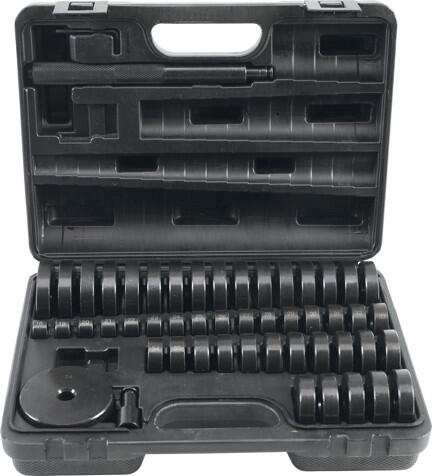 Csapágy perselyek, szilentek, szimeringek szerelésére alkalmas. Ajánlott hidraulikus présekkel használni! Nyomótárcsák mérete: 18, 19, 20, 21, 22, 23, 24, 25, 26, 27, 28, 29, 30, 31, 32, 33, 34, 35, 36, 37, 38, 39, 40, 41, 42, 43, 44, 45, 46, 47, 48, 49, 50, 51, 52, 53, 54, 55, 56, 57, 58, 59, 60, 61, 62, 63, 64, 65 és 74 mm 1 db 180 x 12 mm fém markolat a kalapáccsal történő szere