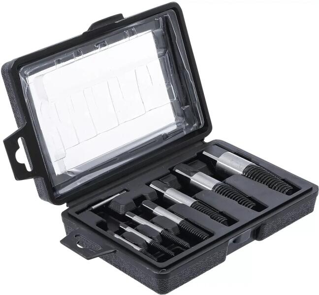 A csavarkiszedő készlet egy praktikus szerszám, amely segít eltávolítani a törött vagy beszakadt csavarokat. A törött és sérült csavarok, valamint a hibás fejű, süllyesztett csavarok gyors és egyszerű meglazításához és eltávolításához Meglazítja a PH és PZ profilú hornyolt és csillagfejű csavarokat, valamint más csavarprofilokat Műanyag kazettában Készlet tartalm