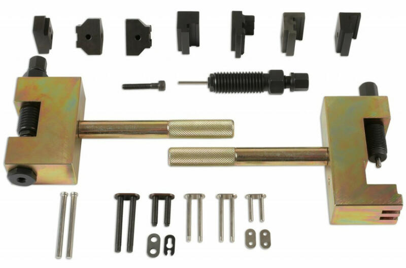 Vezérműlánc-cseréhez, szét- és összeszereléshez, szegecseléséhez szükséges szerszámok. Dupla vezérműlánc-szereléséhez, 4 mm-es szegeccsel ellátott láncokhoz, pl. Mercedes. Alkalmas: 1.7D, 2.1D, 2.2D, 2.7D, 3.0D, 3.2D, 3.9D, és 4.0CDi dízel, beleértve Chrysler/Jeep 2.2D, 2.7D, 3.0CRD dízel, de mindig ellenőrizze az alkalmasságot. Mercedes gyári OEM kódok: 112589096300, 6