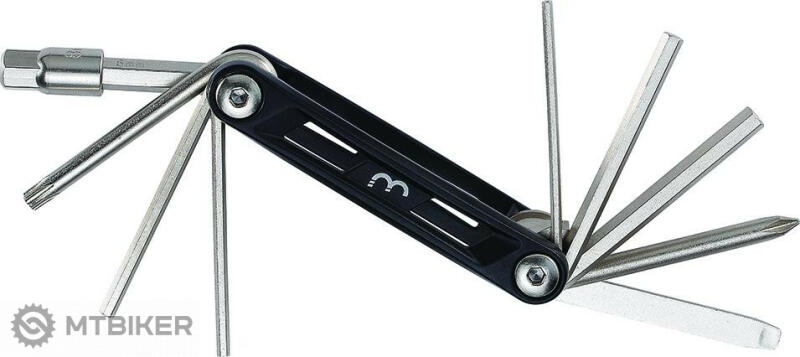 Csúcskategóriás összecsukható szerszám tartós alumínium tokban. A tömörséget két imbuszfejű csavar biztosítja. 10 funkció. Imbuszkulcsok: 2, 2,5, 3, 4, 5, 6, 8 mm. Phillips és lapos csavarhúzó. Torx T25.