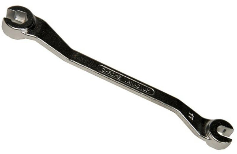 Krómozott felületű fékcsőkulcs. Egyenes, mindkét vége kétszer hajlított (lépcsőzetes) Méret: 10x11mm, 6-lapos