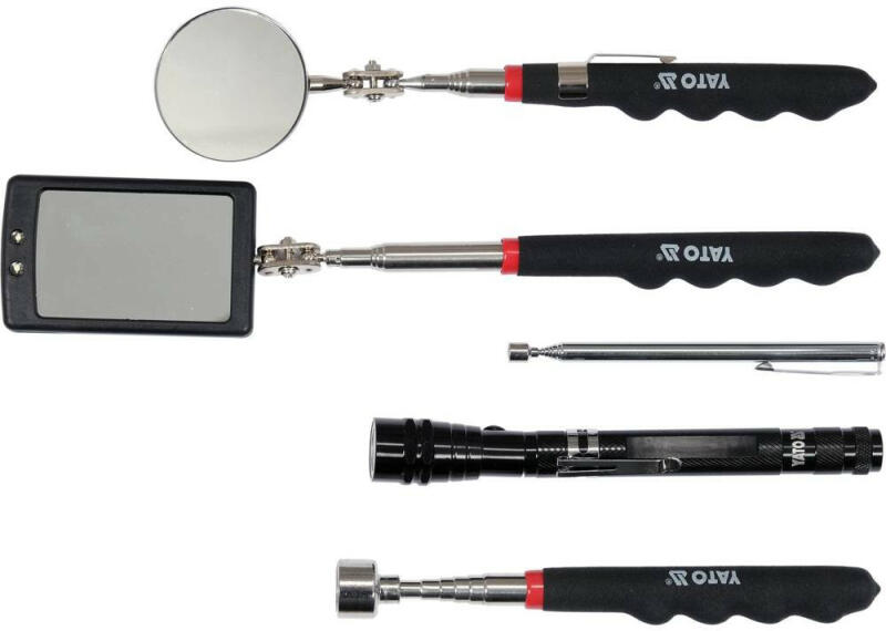 A Yato YT-06622 egy inspekciós készlet , amely az alábbi öt elemből áll: Teleszkópos mágneses pálca - 7 kg maximális teherbírással, hossza 181-779 mm. Teleszkópos mágneses pálca - 0,5 kg maximális teherbírással, hossza 129-648 mm. Teleszkópos tükör - ovális, mérete 84x53 mm, hossza 240-695 mm. Teleszkópos tükör - kerek, átmérője 50 mm, hossza 283-880 mm. Mini LED zsebl