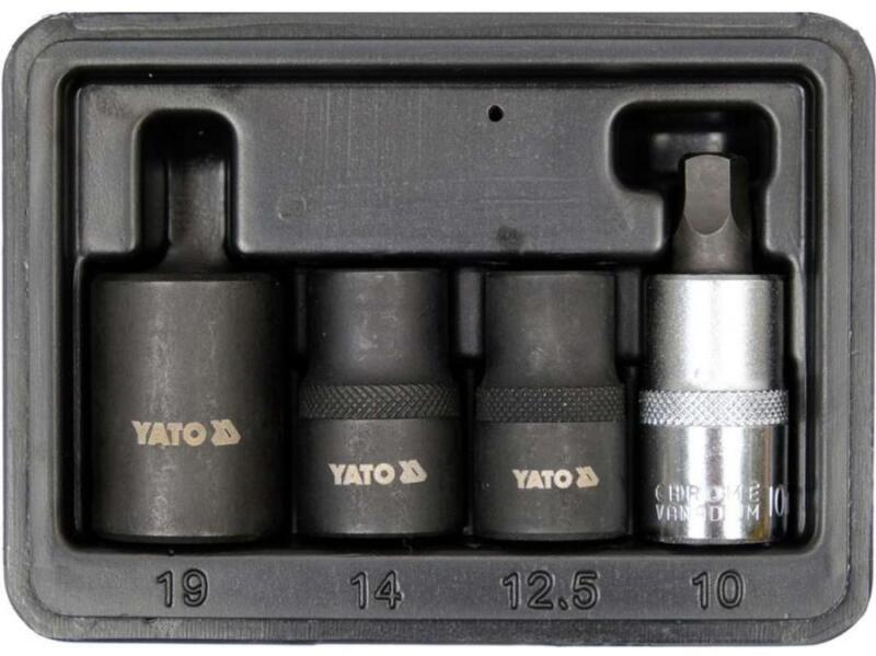 Termékadatok: Féknyereg szerelő dugókulcs készlet CrV acélból, Ford, Smart, Opel, Citroën, Peugeot, Renault márkájú autókhoz Befogás: 1/2" A készlet tartalma: 12,5 mm-es, 5 lapú dugókulcs - Peugeot, Citroën 14 mm-es, 5 lapú dugókulcs - Ford, Smart, Opel: Astra G és Zafira 19 mm-es 5 lapú dugókulcs - Citrëen, Peugeot, Renault 10 mm-es bit, ötszög alakú profillal, BENDIX é