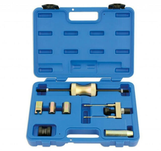 Porlasztókihúzó speciális szerszámkészlet Volkswagen-csoportokhoz. Adapterekkel, sulykoló kalapáccsal a beszorult porlasztók kihúzásához. Használható: 1.4 SDI/TDI, 1.9D/SDI/TDI (PD), 2.0TDI (PD) és PD 4-szelepes, 2.5 TDI, 2.5TDI (PD), 2.8TDI (PD), 2.7/3.0 TDI Anyaga: Chrome-Molibdén acél és Chrome-Vanadium acél Tartalom (3-fajta speciális adapterrel): 1 db sulykoló kalapács 1