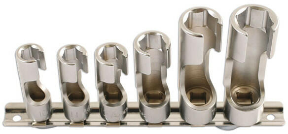 Speciális, hosszú dugókulcs készlet. Egy oldalon nyitott kivitel, ezért hozzáférést biztosít a csatlakozókkal, vezetékekkel ellátott érzékelő egységekhez. Használható: ABS csövekhez, főfékhenger csövekhez, üzemanyag befecskendező csövekhez, hűtőközeg érzékelőkhöz, stb. Kiválóan alkalmazható a nehezen hozzáférhető helyeken. Tároló sínen szállított kivitel.