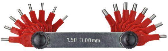 Csapok mérete: 1,5, 1,6, 1,7, 1,8, 1,9, 2,0, 2,1, 2,2, 2,2, 2,3, 2,4, 2,5, 2,6, 2,7, 2,8 2,9, 3,0 mm