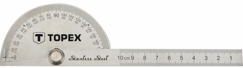 TOPEX 100 mm-es vonalzós szögmérő. A mérőeszköz kiválóan beválik szerelési, barkácsolási munkákban. Kiváló minőségű rozsdamentes acélból készül. A TOPEX márka ezermestereknek készül.