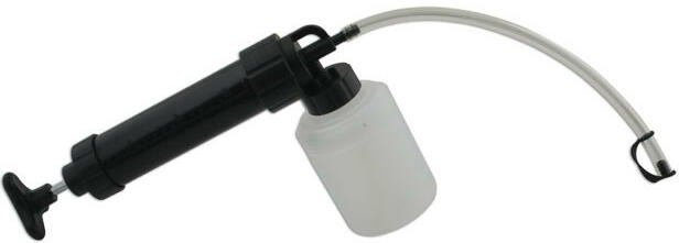 Alkalmas olaj, fagyálló-, szélvédőmosó-folyadékok leszívására, beleértve a fékolajat is. Üzemanyaghoz (benzinhez) NEM alkalmas! Használata: Húzza ki a kézipumpát, hogy a leszívócsövön keresztül leszívja a folyadékot a gépjárműből a pumpatest tartályába. Nyomja be a kézipumpát, hogy kiürítse a használt folyadékot a fecskendőből az 1 literes alsó palackba (tart