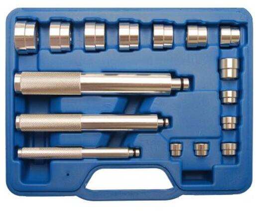 alumíniumból készül 3 ütőszár: Ø 11 - 16 - 21 mm 13 nyomóbetét: 10 mm belső x 12 mm külső átmérővel 12x14 14x16 15x17 16x18 18x20 19x21 20x22 22x24 25x27 26x28 28x30 30x32 mm