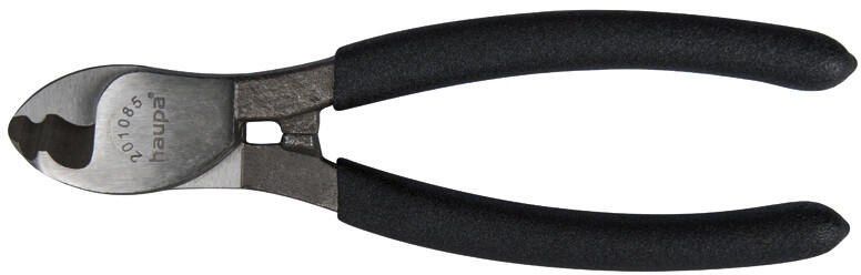 HAUPA 201085 kábelvágó D=0-8mm th=160mm Kábelvágó Kábelvágó Cu- / Al- kábelekhez finom erezésű és többeres Króm vanádium acélból, mártott markolatszigeteléssel Kábelcsupaszító funkció a fej felső tartományában Kábelkés funkció 180 fokos nyitási képességének köszönhetően Tömör vezetékekhez nem ajánlott Adat-, telefon- és vezérlőkábelekhez max. Ø 8 mm Cu