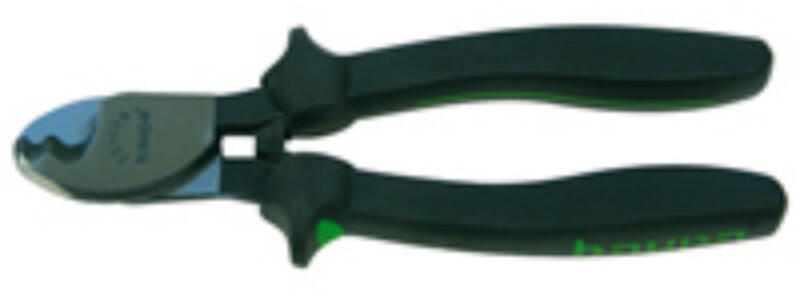 HAUPA 201086 kábelvágó D=0-10mm th=180mm Kábelvágó Kábelvágó Cu- / Al- kábelekhez finom erezésű és többeres Króm vanádium acélból, felhúzott markolati borítás Kábelcsupaszító funkció a fej felső tartományában Kábelkés funkció 180 fokos nyitási képességének köszönhetően Tömör vezetékekhez nem ajánlott Adat-, telefon- és vezérlőkábelek max. Ø 8 mm Cu eg