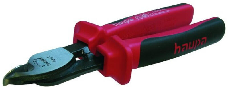 HAUPA 211223 kábelvágó 200mm Kábelvágó olló VDE Finom- és többerű Cu- / Al- kábelek vágásához Chrom Vanádium acél, ráhúzott markolat Kábelcsupaszító funkció a fej felső részén Kábelkés funkció 180 fokos nyitási képességének köszönhetően Tömör vezetékekhez nem használható Cikkszám 211225 (Cikkszám 211223) Adat-, telefon- és vezérlőkábelekhez max. Ø 10