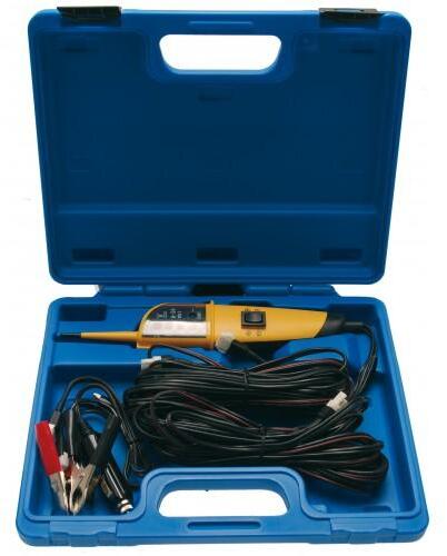 figyelemre méltóan hasznos kézi multiméter egykezes kezeléssel gépkocsiban teherautóban motorkerékpáron elektronikus áramkörök ellenőrzéséhez (6 - 24 V) erős fényű LED garantálja a munkaterület jó megvilágítását könnyű hibakeresés az alkalmazott pozitív vagy negatív polaritással a potenciál két változó színű LED kijelzővel alkalmazására a gyújtás vagy befe
