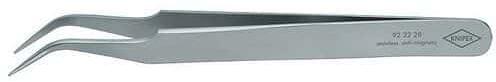 Csipesz nagyon finom hegyekkel. Sima belső pofák. Tükröződésmentes, rozsdamentes acél és antimágneses matt felület.
