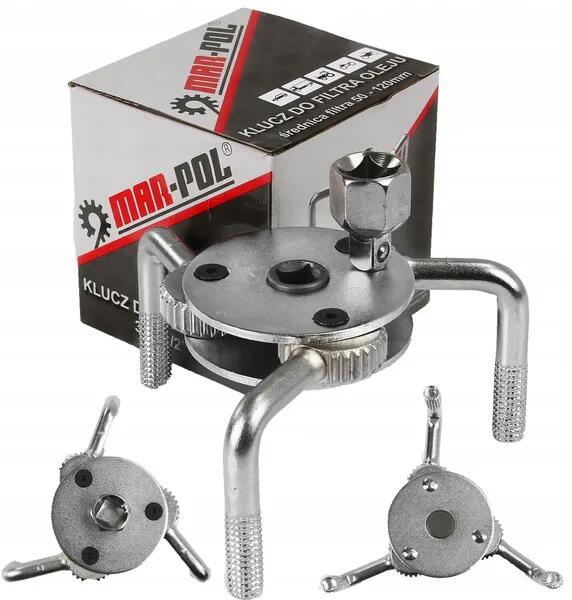 Minden Személygépkocsi Olajszűrőhöz Kb. 60 - 100 Mm Átmérő Között Nehezen Hozzáférhető Szűrőkhöz És Szűrőbetétekhez Háromkaros Jobbos És Balos Működés Robusztus Felépítés A Speciálisan Bordázott Felfekvő Felületek Biztos Tartást Biztosítanak A Szűrőn Univerzálisan Használható Behajtófej Adapterrel 12,5 Mm (1/2") Külső Hatszögletű Kihajtófejen 10 Mm (3/8