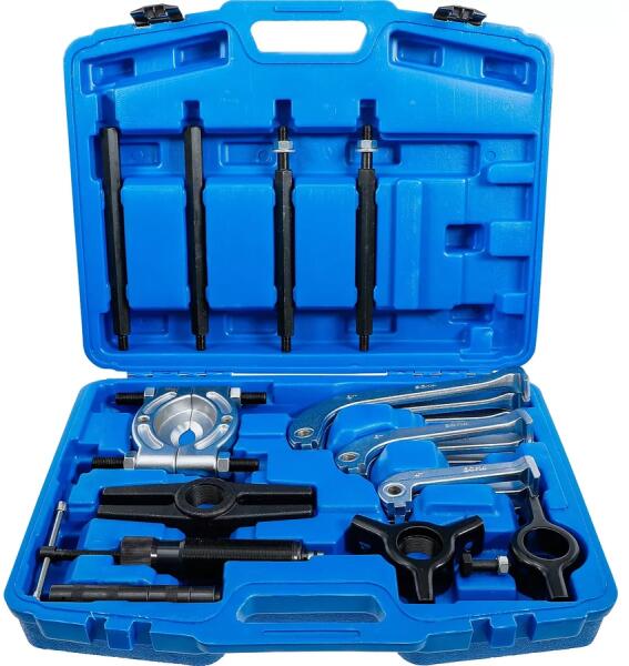 A hidraulikus lehúzó készlet 10 tonnás kapacitással ideális eszköz autószerelési és karbantartási feladatokhoz. Specifikáció Hidraulikaheng er 10 t 2 db hosszabbító Egy-egy fejidom 2 karos és 3 karos lehúzóhoz 3-3 db lehúzókar 100, 150 és 200 mm hosszúságban Max. szélesség 240 mm 100 mm lehúzókar hossz esetén 280 mm 150 mm lehúzókar hossz esetén 300 mm 200 mm lehúz
