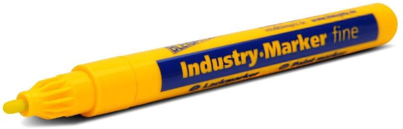 Vékony ipari jelölőfilc sárga (1-2 mm) - Minőségi jelölőfilc professzionális ipari felhasználásra - Szinte minden anyag, mint például fém, üveg, műanyag, kő, karton, csempe, fa erősen fedő jelölésére - Különösen alkalmas a sötét felületek írására és jelölésére - Vízálló, gyorsan száradó lakk - Extra vékony hegy - Ha a filchegy elhasználódott: Húzza ki a