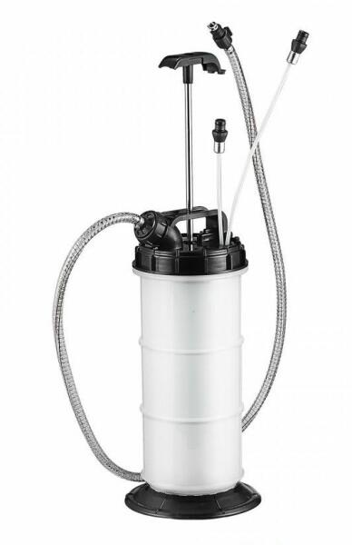 Kézi pumpával működtethető, vákuumos, 6 literes folyadék leszívó berendezés. Alkalmas: motorolaj, váltóolaj, diffi olaj, fagyálló, gázolaj, benzin, stb. Alkalmazható gépjárműveknél, motorkerékpároknál, hajóknál, munkagépeknél, ipari gépeknél, stb. Tulajdonságok: - Átlátszó folyadék tartály a folyadék láthatósága érdekében. - Kézi pumpálás hatására vák