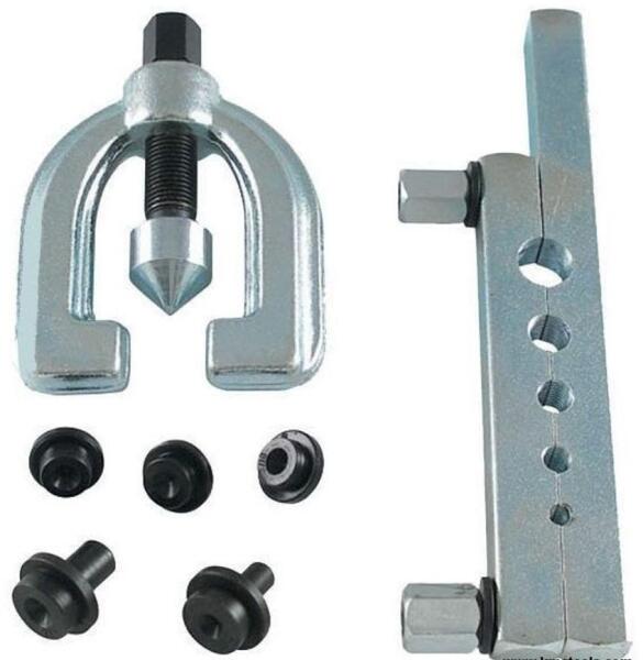 Csőperemező készlet. Speciális kialakítása lehetővé teszi az egyszerű (tölcsér) és dupla (lencse) kialakítású peremezést réz, alumínium és lágyacél fékcsöveknél, sárga/vörösréz csöveknél 1mm-es falvastagságig (max. 45°)A készlet tartalma:- csőtartó lemez: 4.8mm (3/16"), 6.3mm (1/4"), 7.9mm (5/16"), 9.5mm (3/8"), 12.7mm (1/2") külső csőátmérőhöz- csőpereme
