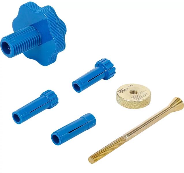 Kuplung központosító készlet. Használható a legtöbb személygépjárműhöz, könnyű haszongépjárműhöz és traktorhoz. Megfelelő illeszkedést biztosít a tengelykapcsoló lemezhez a kúpos adapter segítségével. A készlet tartalma:- 1db vezető szár (220mm hosszú)- 1db kúpos adapter (80mm hosszú)- 8db belső menetes adapter; méret: 11, 15, 16.5, 17, 19, 20, 20.5, 25mm. Hossz: