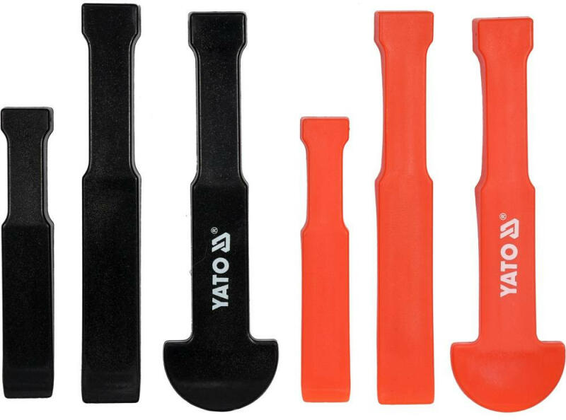 YATO YT-08477 Műanyag véső készlet Műanyag vágókészlet panelek, ragasztott elemek stb. szétszerelésére. Lehetővé teszik az elemek szétválasztását, minimalizálva károsodásuk lehetőségét. Vésők, amelyeket kalapáccsal való könnyű ütésre terveztek. Paraméterek Méretek: 127x22,2x12,7, 175x12,7x41,25, 175x50x41,25 mm Anyaga: nylon Alkalmazása: panelek, ragasztott elemek